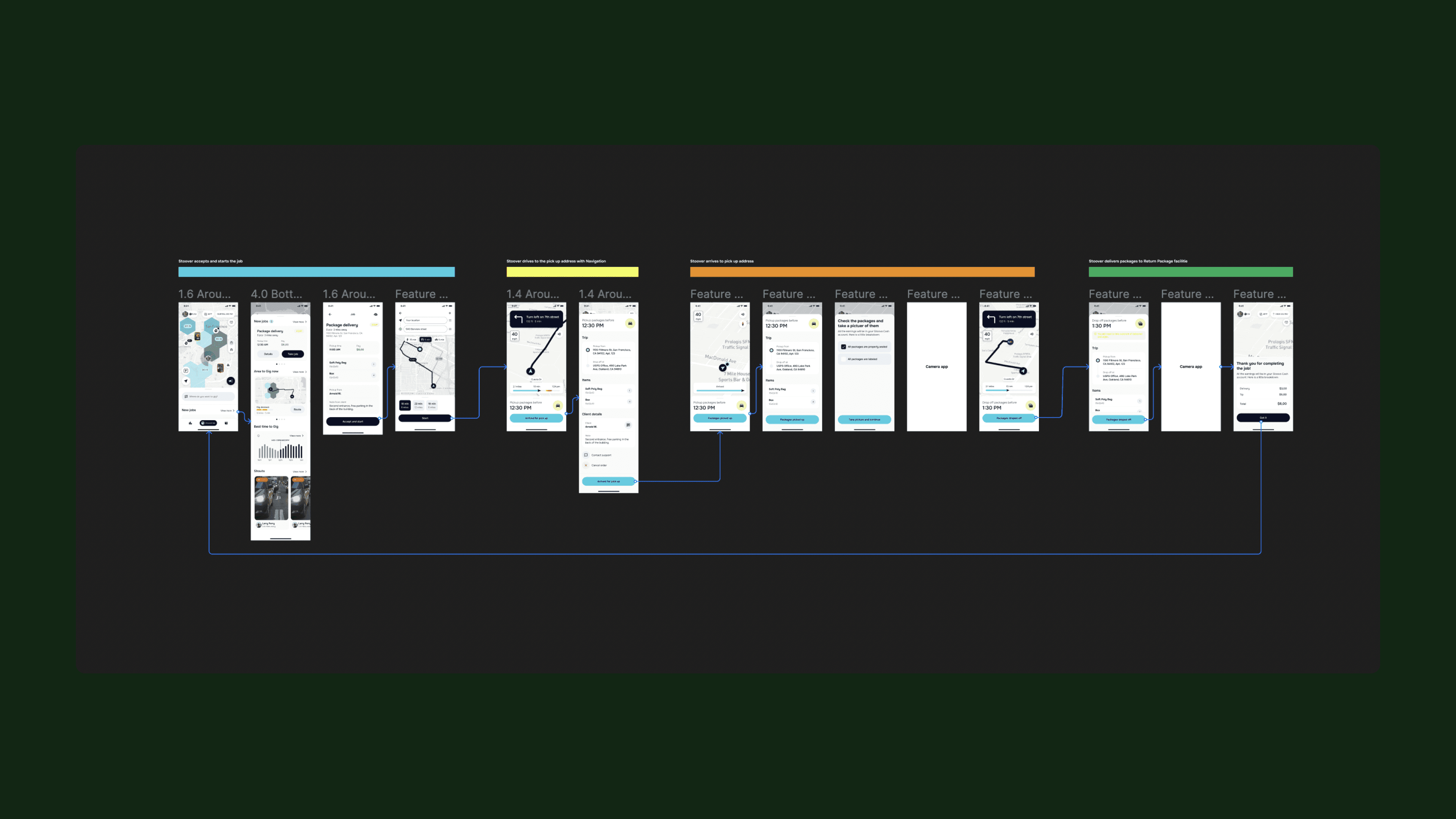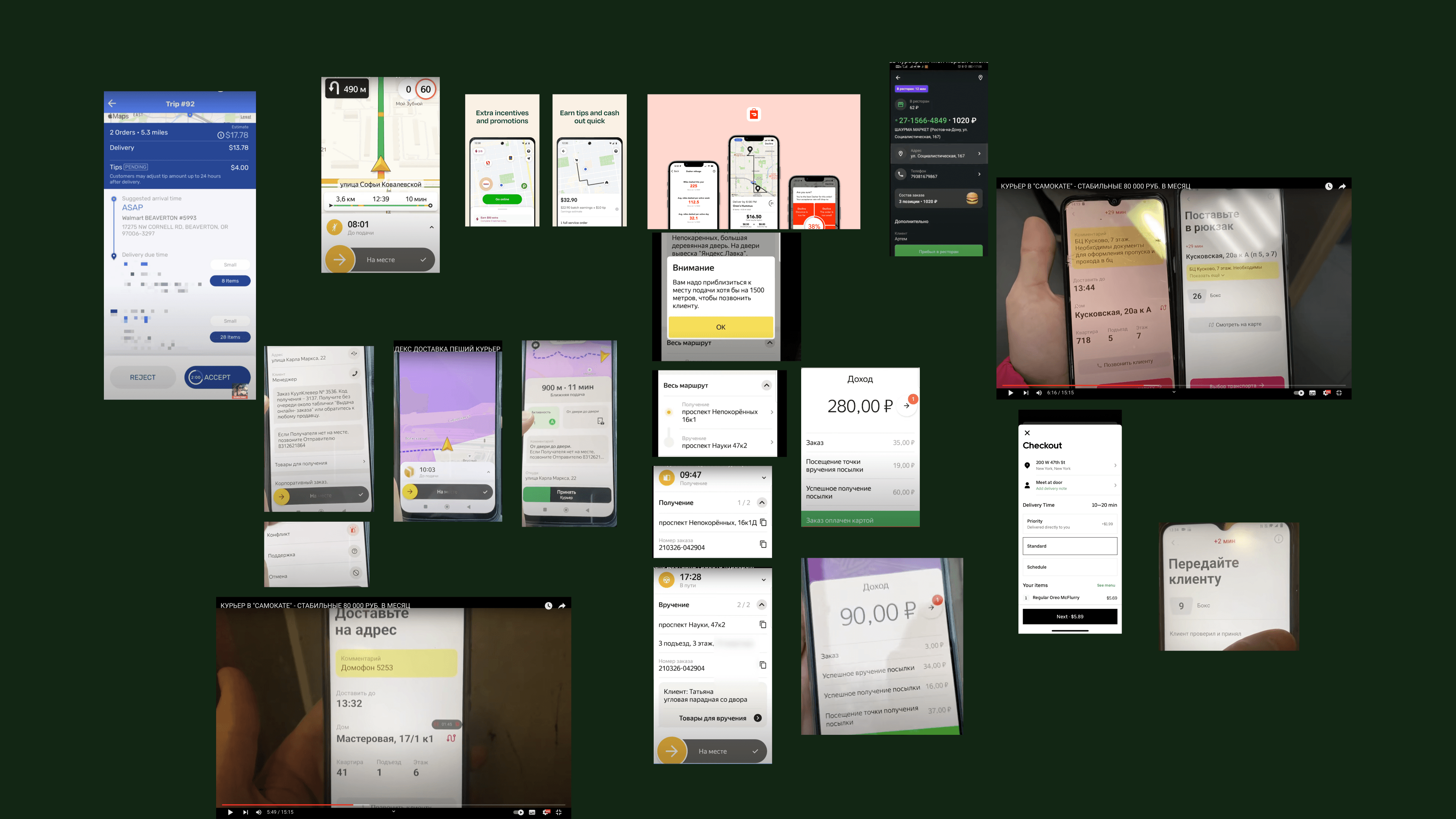 Because of limited resources and time I went with desk research to better understand the landscape of the couriers apps and what are they used to. Watched tens of youtube and tiktok videos of couriers delivering packages, went on specialized forums like uberpeople.