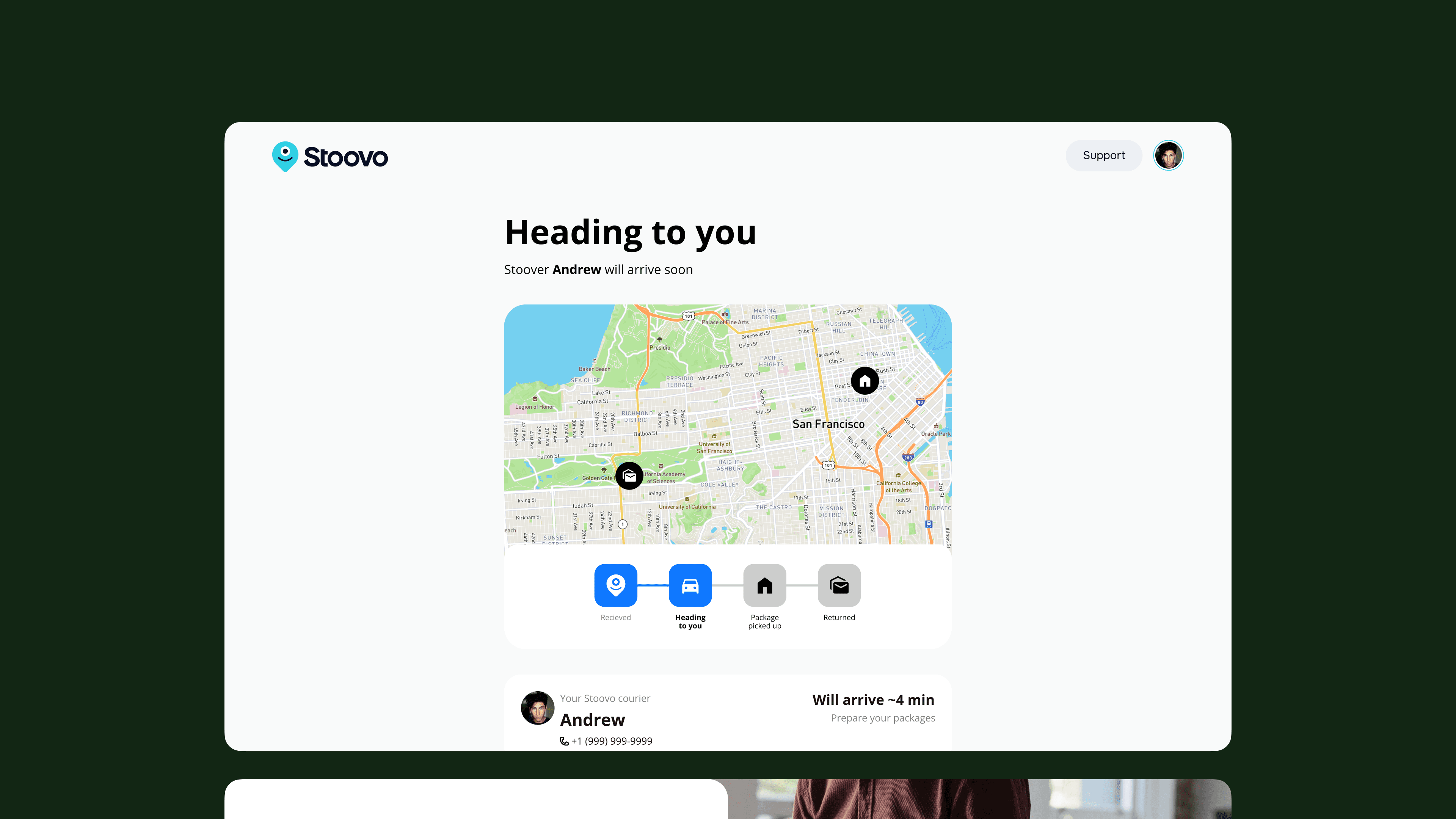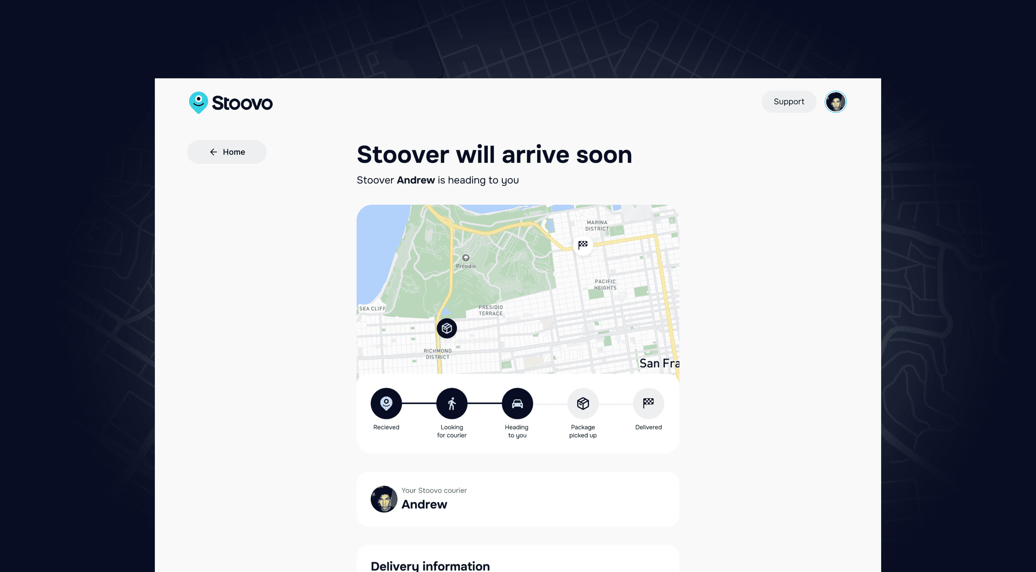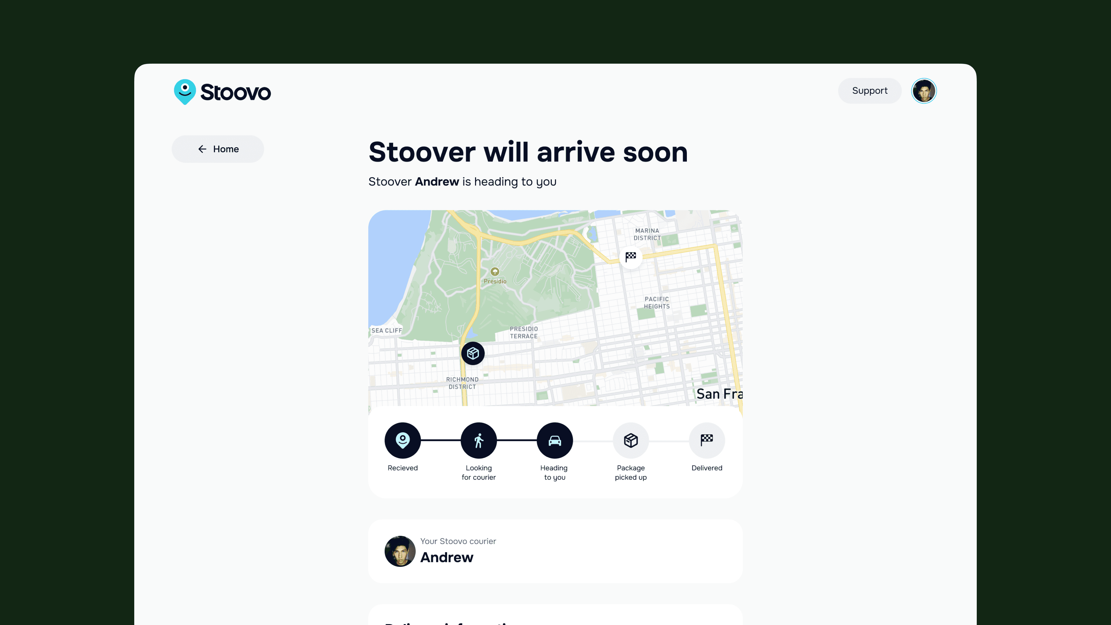 For the courier side of this big project we planned on creating new feature inside Stoovo app, because it already had similar functionality(geolocation, map, navigation, etc.) and our users are delivery drivers.