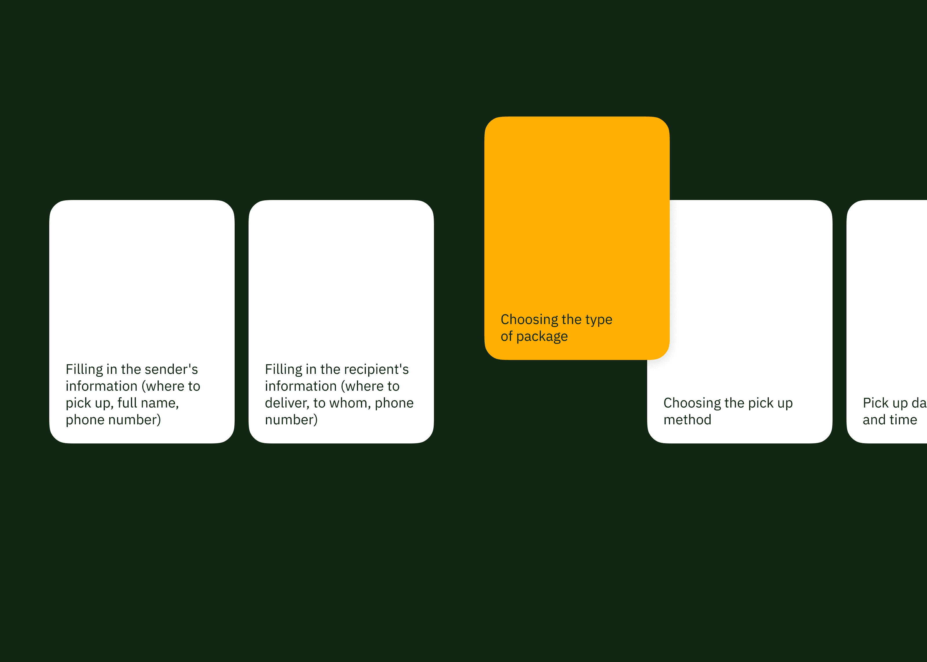 I needed to interview potential users of such delivery service and went inside Humbleteam to ask for help. And found couple people from administrative department that has been using similar services and Czechia. Conducted interview and a little card sorting, asking them to build out most comfotable flow of ordering a delivery.