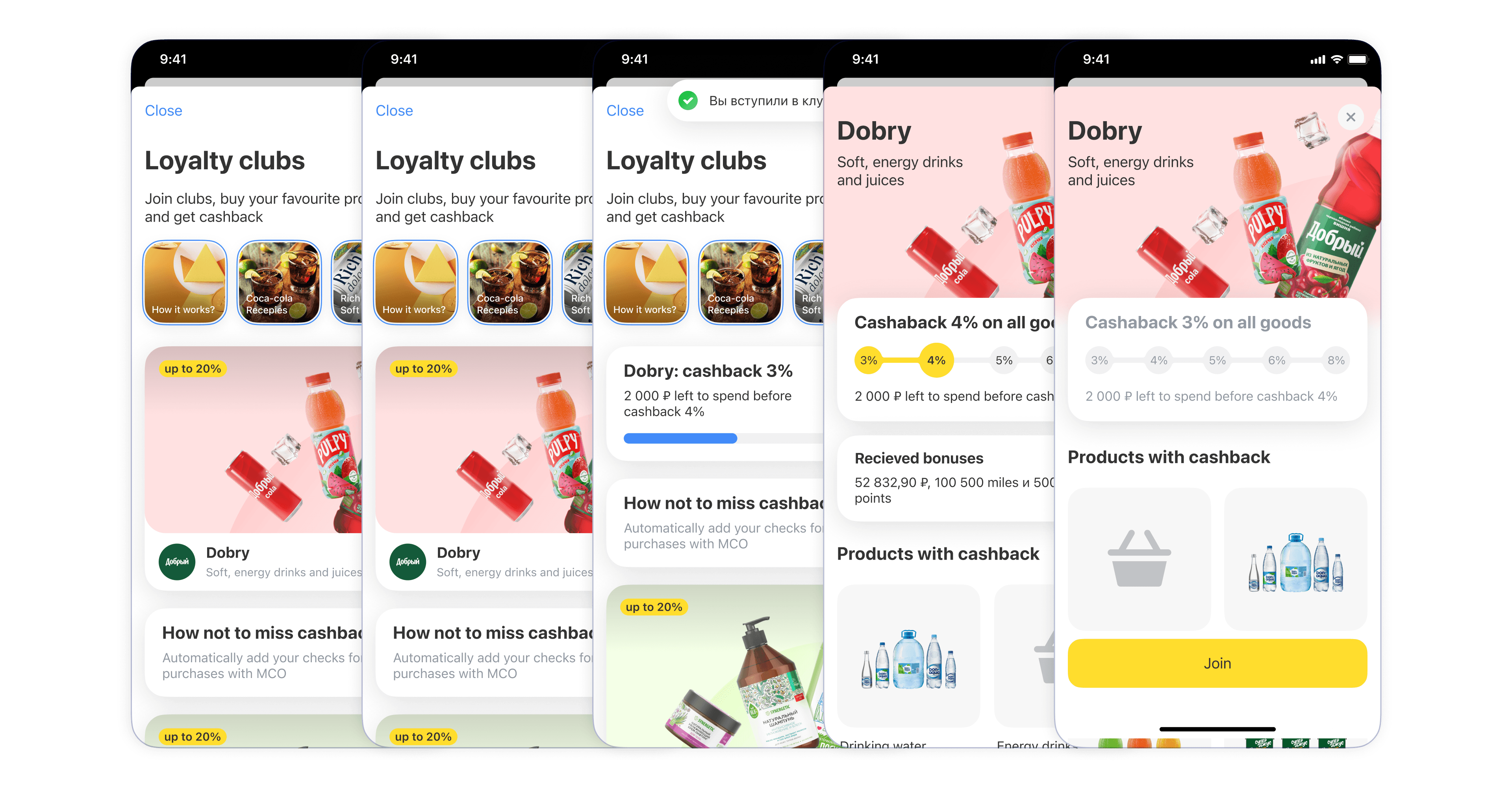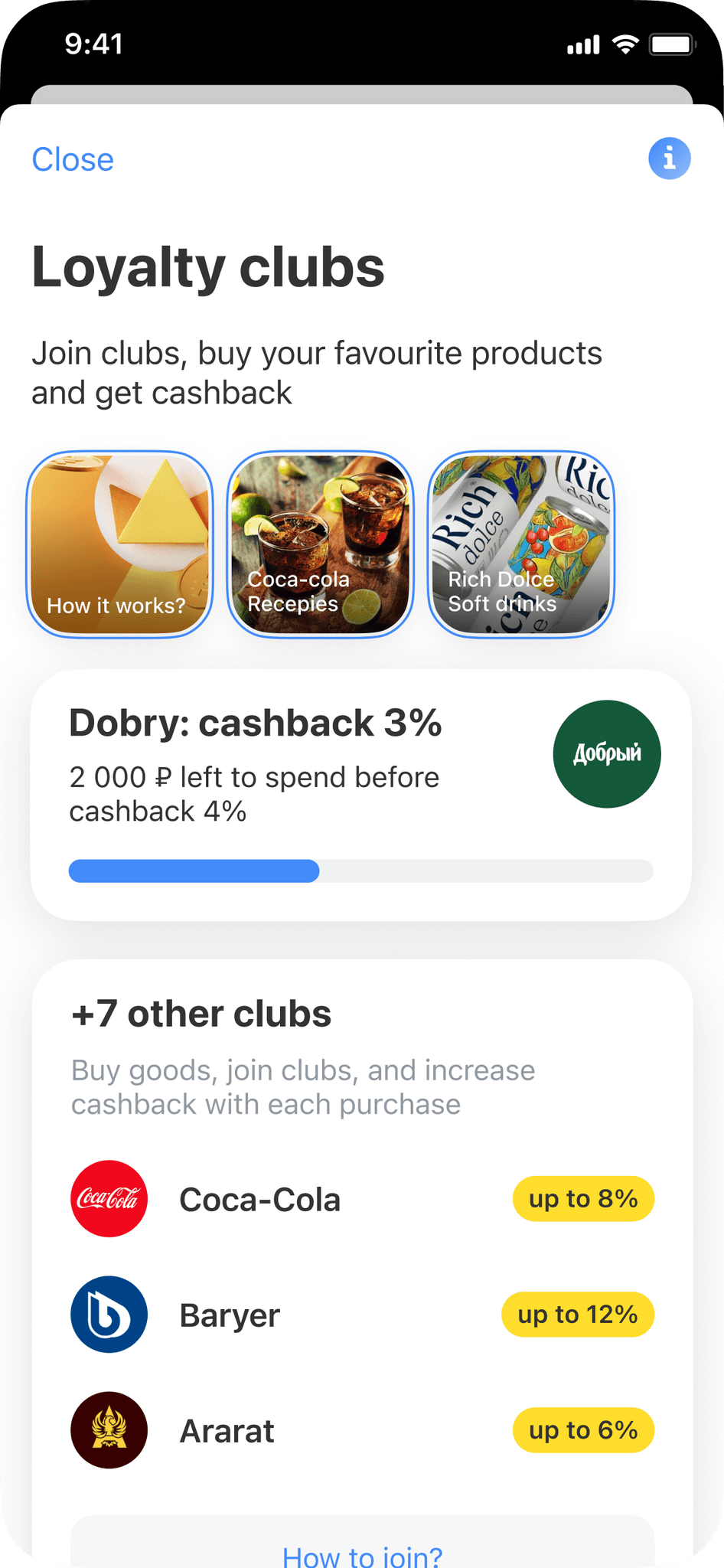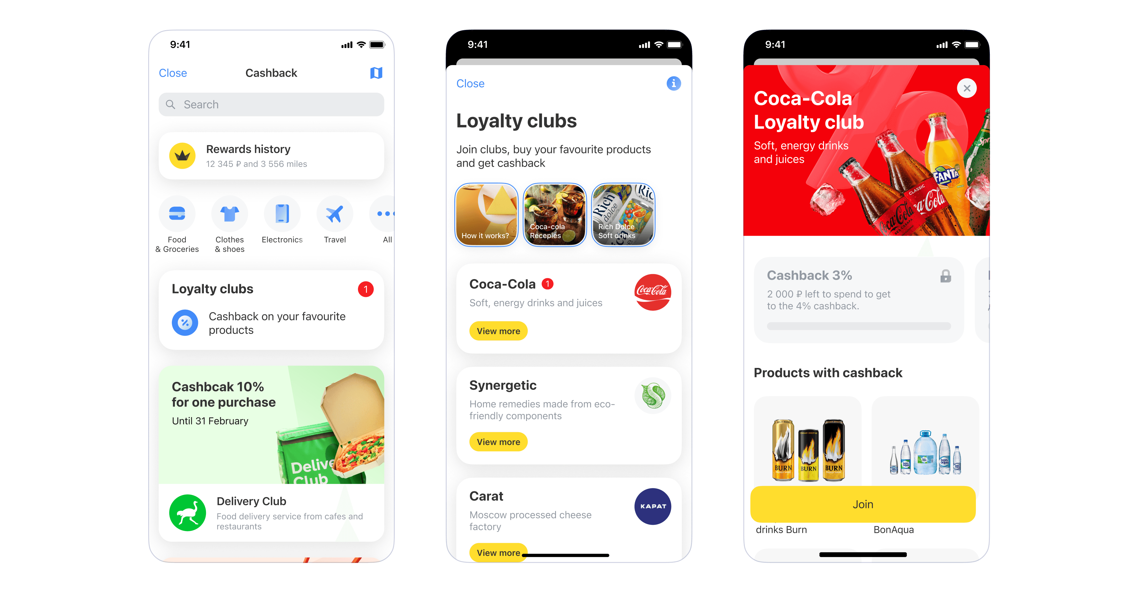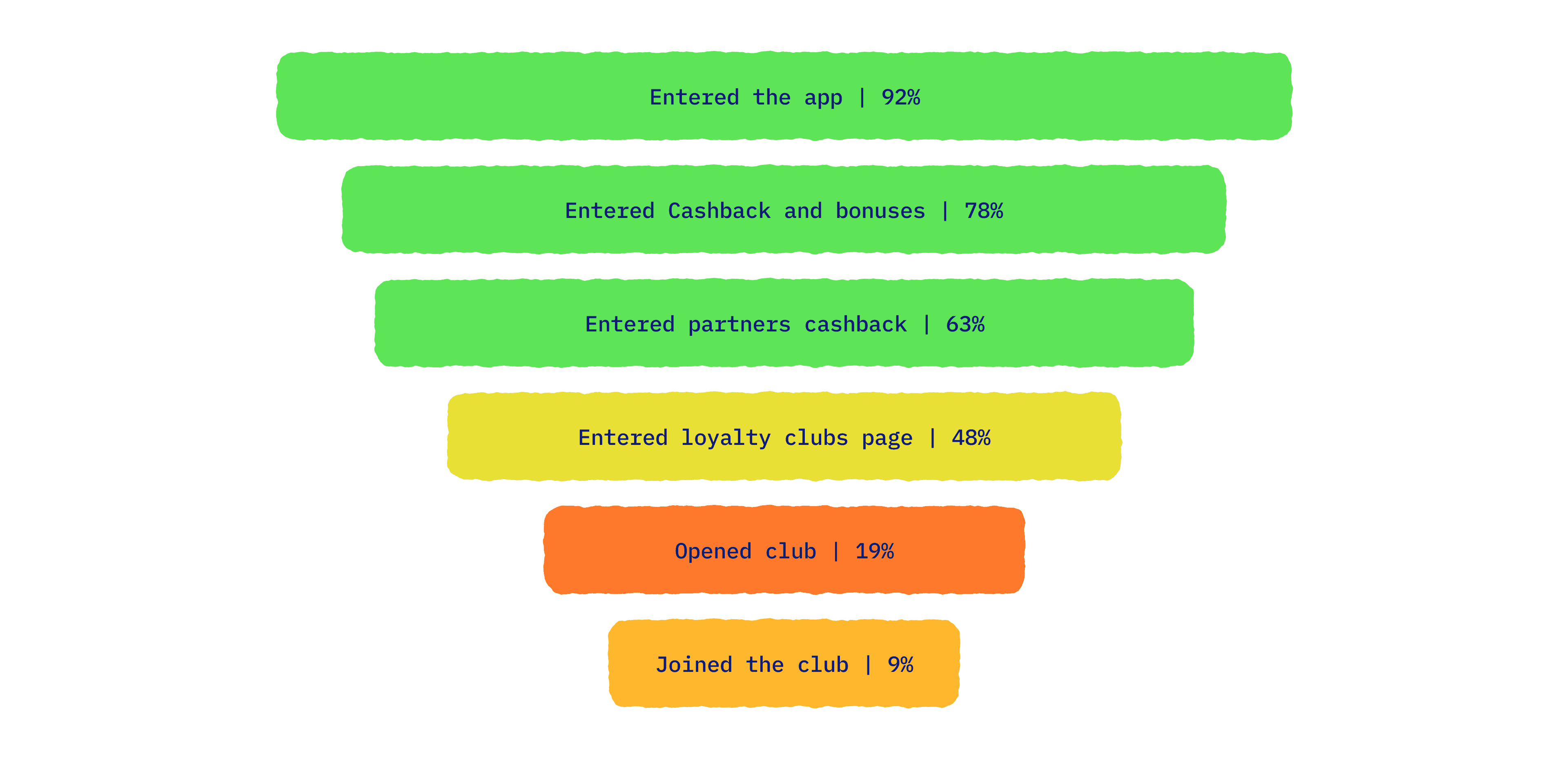Loyalty Clubs have strong headroom for gamification (levels, prizes, ongoing actions). I’d explore Hook-model loops for engagement and consider bringing cashbacks & clubs into the main feed to further increase entry points.